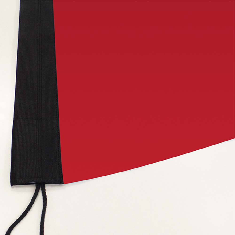 Die Fahne besteht aus 110 g/m² Fahnenstoff bei der das Besatzband als Gummiband in schwarz, weiß oder als bedruckter Stoffsaum erhältlich ist. Die Fahne ist 4/0-farbig, einseitig bedruckbar und kann individuell bedruckt werden.