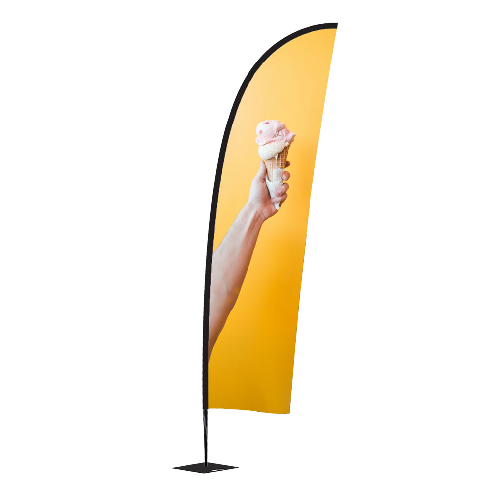 Die Beachflag Wind Small von CO-PRINT in München ist in ihrer Form besonders witterungsbeständig und daher auch für windigere Bereiche hervorragend geeignet. Somit ist sie die ideale Flagge für Außenbereiche, aber auch in Innenbereichen zieht sie die Blicke der Passanten auf sich. Deshalb kann sie optimal als Wegweiser oder zur Kommunikation von Botschaften genutzt werden, beispielsweise auf Messen und Events, bei Produktvorstellungen oder Geschäftseröffnungen. Aber auch als dauerhafter Werbeträger vor Autowerkstätten, an Ständen in der Fußgängerzone oder als Außenwerbung vor dem Einzelhandel ist sie dank ihrer Stabilität bestens geeignet.